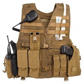 Chaleco táctico portamaterial con sistema Molle para poder adaptar cualquier tipo de accesorio. Dispone de bolsillos interiores portadocumentos y uno en la espalda para Camelback.